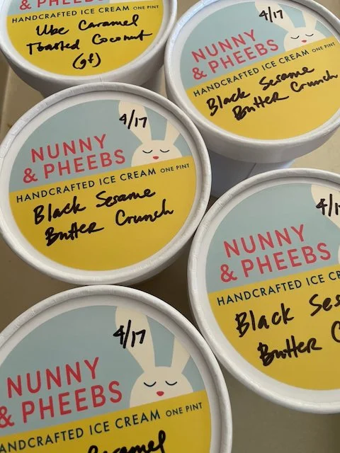 Nunny & Pheebs is a small-batch ice cream brand I founded in 2022 with a simple goal: to make ice cream that tastes good and brings joy. I developed the brand from the ground up — naming, visual identity, tone of voice, and packaging design — crafting a look that balances childhood whimsy with modern minimalism. The bunny is a nod to my daughter’s bestie stuffie, named “Nunny” that is always there for her when she needs comfort.